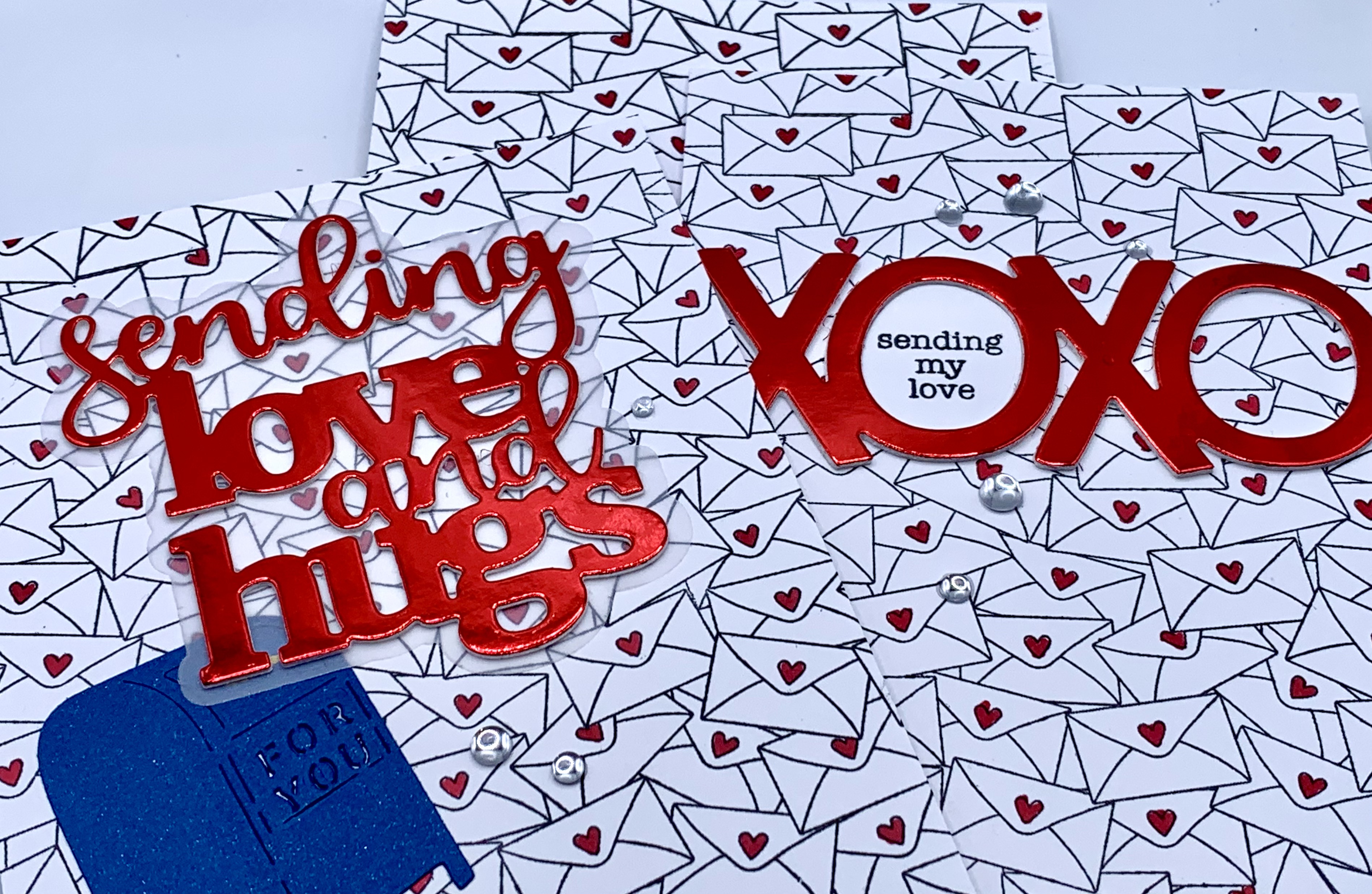 Love your envelope-filled background and all of the tiny red hearts, Elizabeth. The shiny XOXO stands out beautifully and I love the sentiment inside the "o".